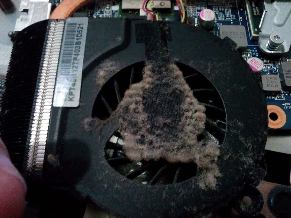 Основные симптомы: ноутбук греется так,что нельзя спокойно работать с ним на коленях, из решетки радиатора выходит горячий воздух (обычно слабой тонкой струйкой), при этом слышен сильный шум пропеллера.